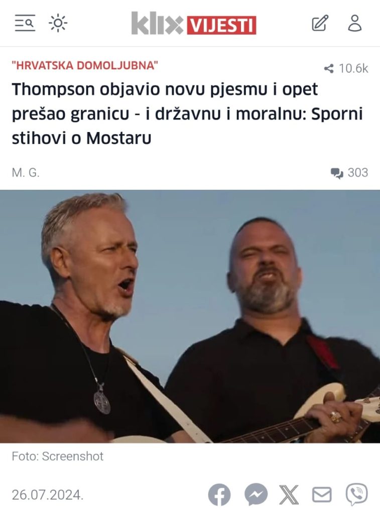 Zanimljivo je da Thompson ne bi bio prvi izvođač koji bi osvojio nagradu sa pjesmom političkog sadržaja. Sjećamo se Dubioze Kolektiv i pjesme „Kažu“ koja je 2014. u Splitu osvojila nagradu za najbolji spot. Radi se o spotu plitkog humora za „raju“ prepun vulgarnosti i poruka bratstva-jedinstva. Nađe se kod njih i pjesma poput „Brijuni“ gdje, nakon nabrajanja tadašnjih predsjednika Hrvatske, BiH i Srbije, dođemo do refrena „džaba svi smo isti, svi smo ista govna“. Kada će bošnjačkim medijima smetati što spominju susjedne države u svojim pjesmama? Ili je to rezervirano samo za Thompsona?